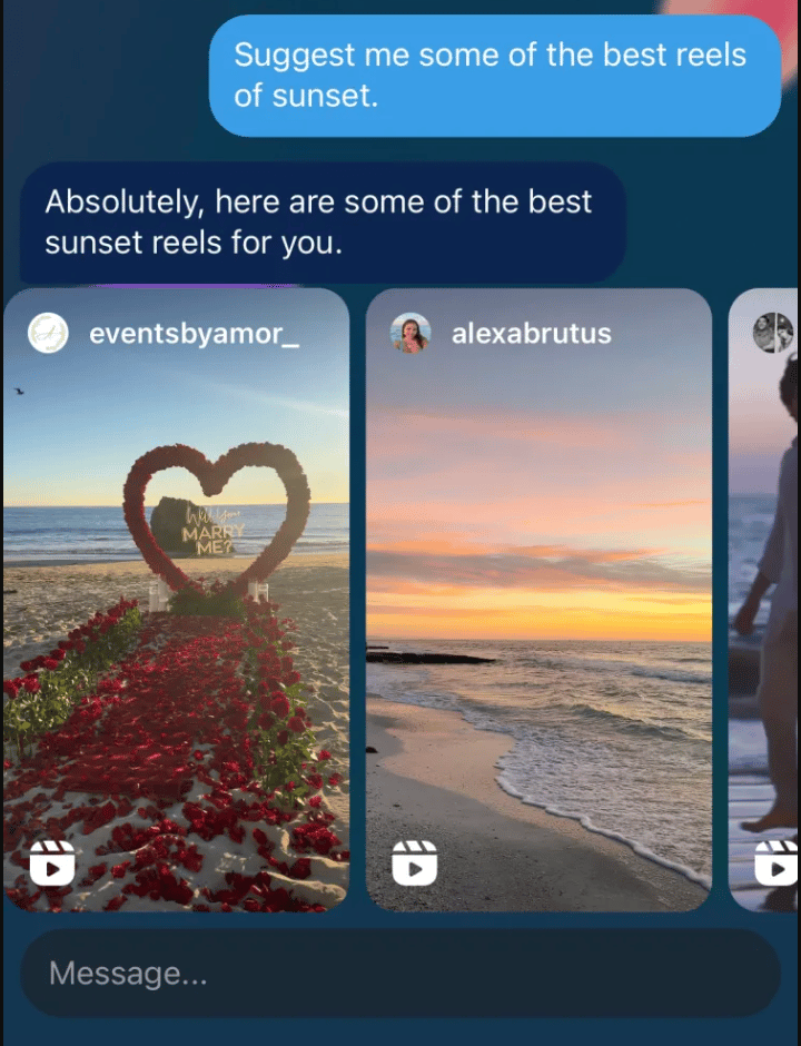 Enhanced Search Capabilities: Users can directly interact with Meta AI through the search bar, which not only answers queries but also suggests content like Instagram Reels.